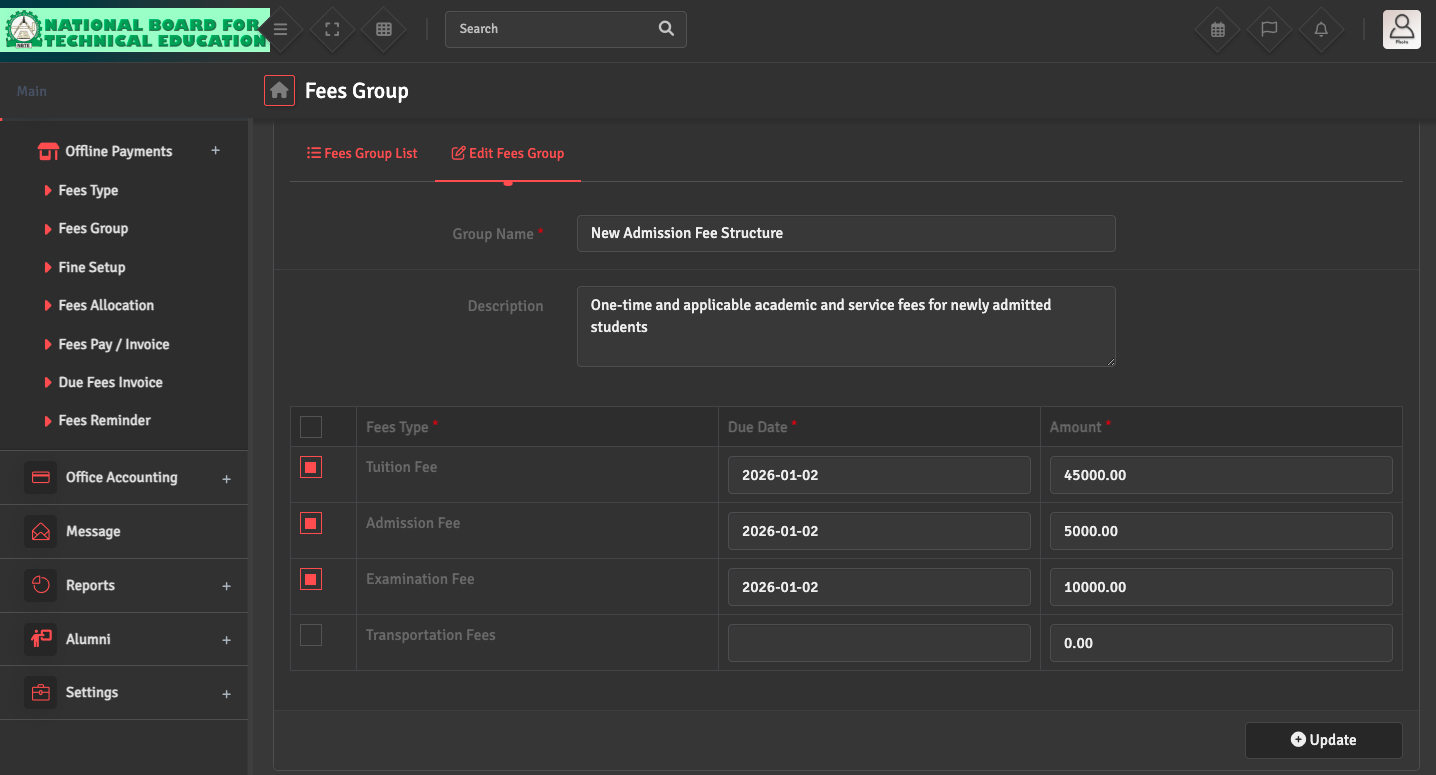 Also check Student Accounting → Fees Group → Fees Group List to ensure the due dates have been set correctly.