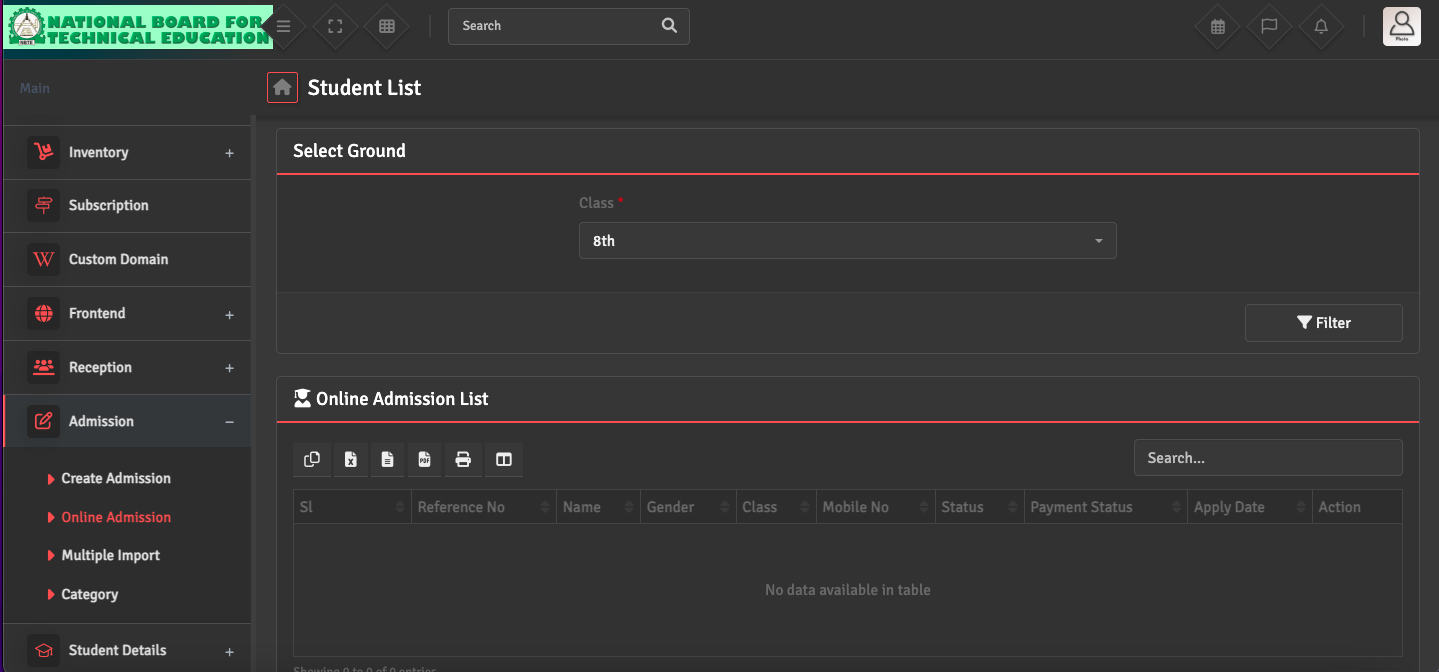To process pending online applications, please go to Admission → Online Admission. Select the Class and here, you can review submitted documents and verify payment status. Once reviewed, click 'Approve' to officially enroll the student into the ERP.