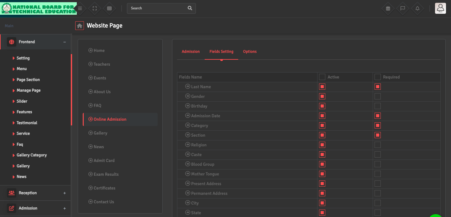 Also, ensure the form fields are correctly mapped and active under Frontend → Page Section → Online Admission → Field Settings so that the data syncs directly into your Student ERP module.