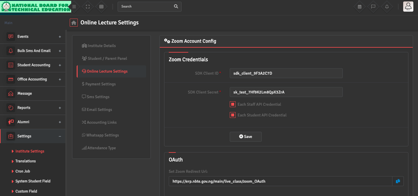 Ensure you have correctly linked your meeting provider account (Zoom/Google Meet) in the Settings → Institute Settings → Live Class Settings section first.