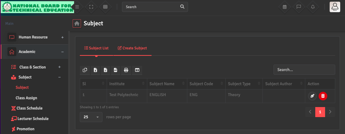 To build your course list, please go to Academics → Subject → Create Subject. Here, you can add all subjects offered at your institute.